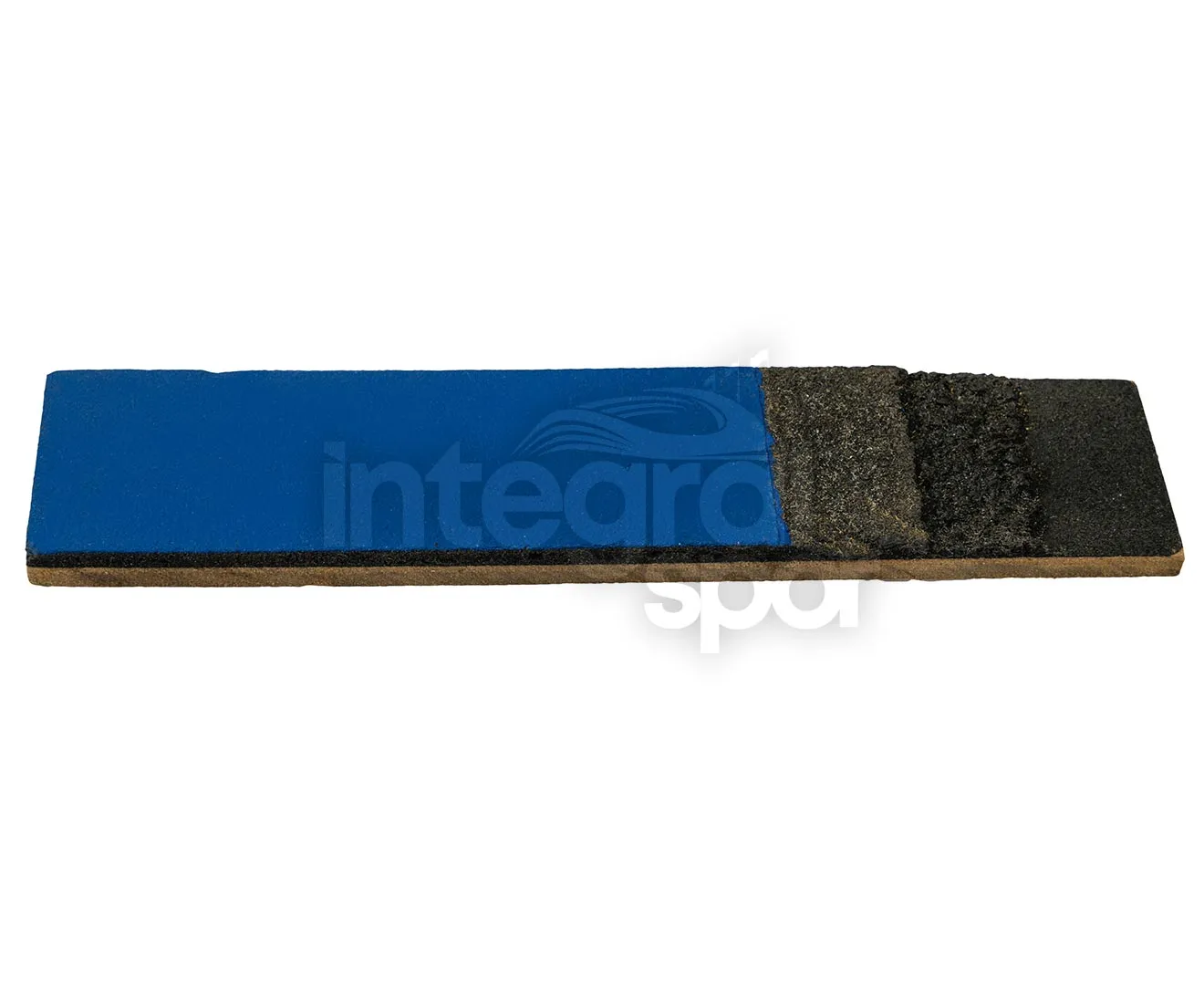 Он состоит из грунтовки, перепокрывающего слоя, амортизирующего слоя, кварцевого песка, финишной краски и краски для разметки.