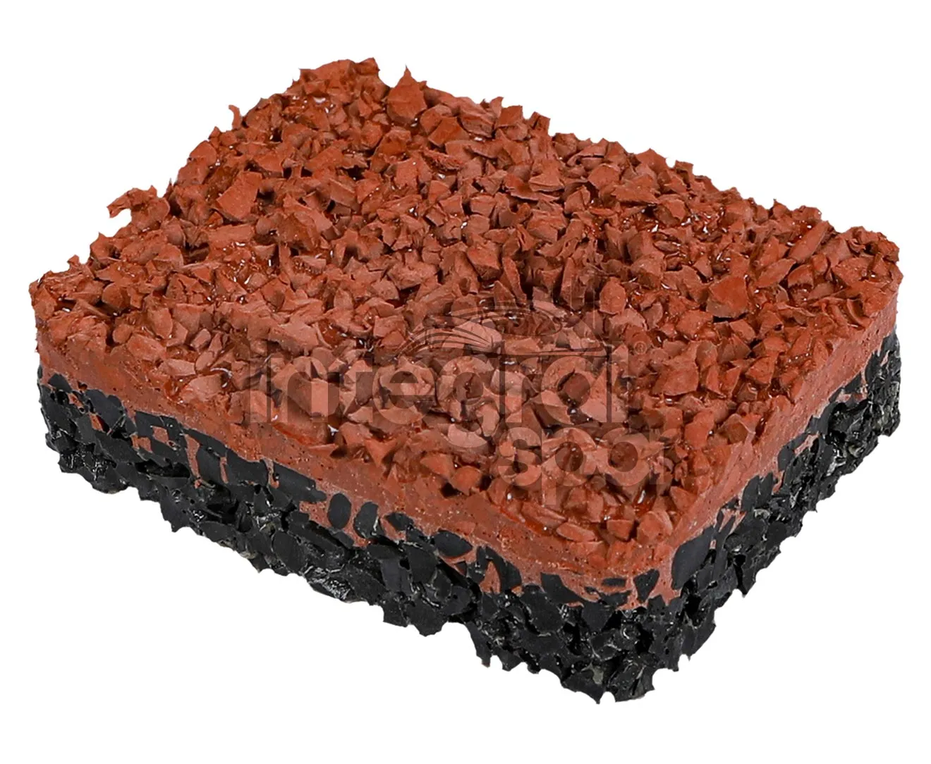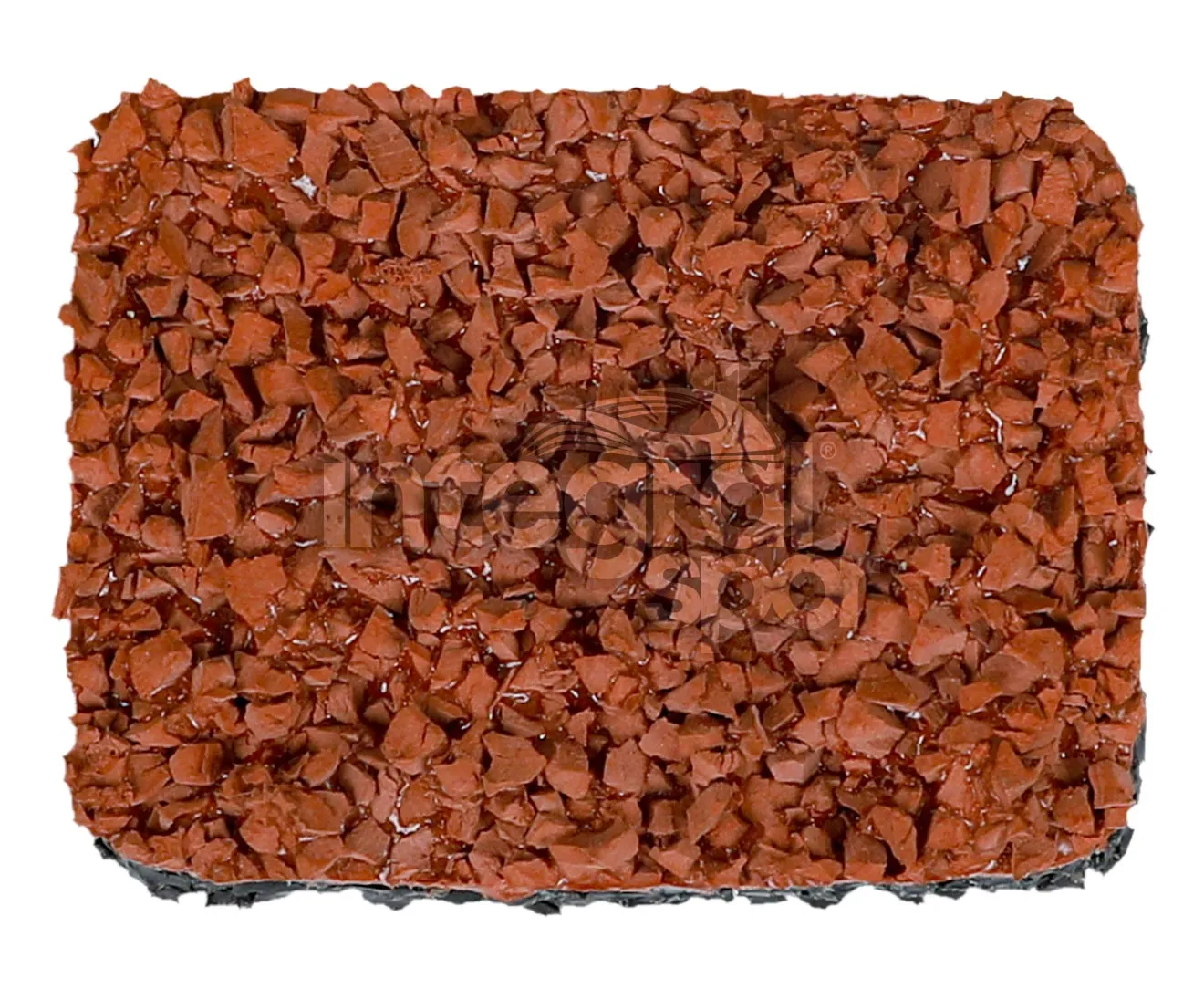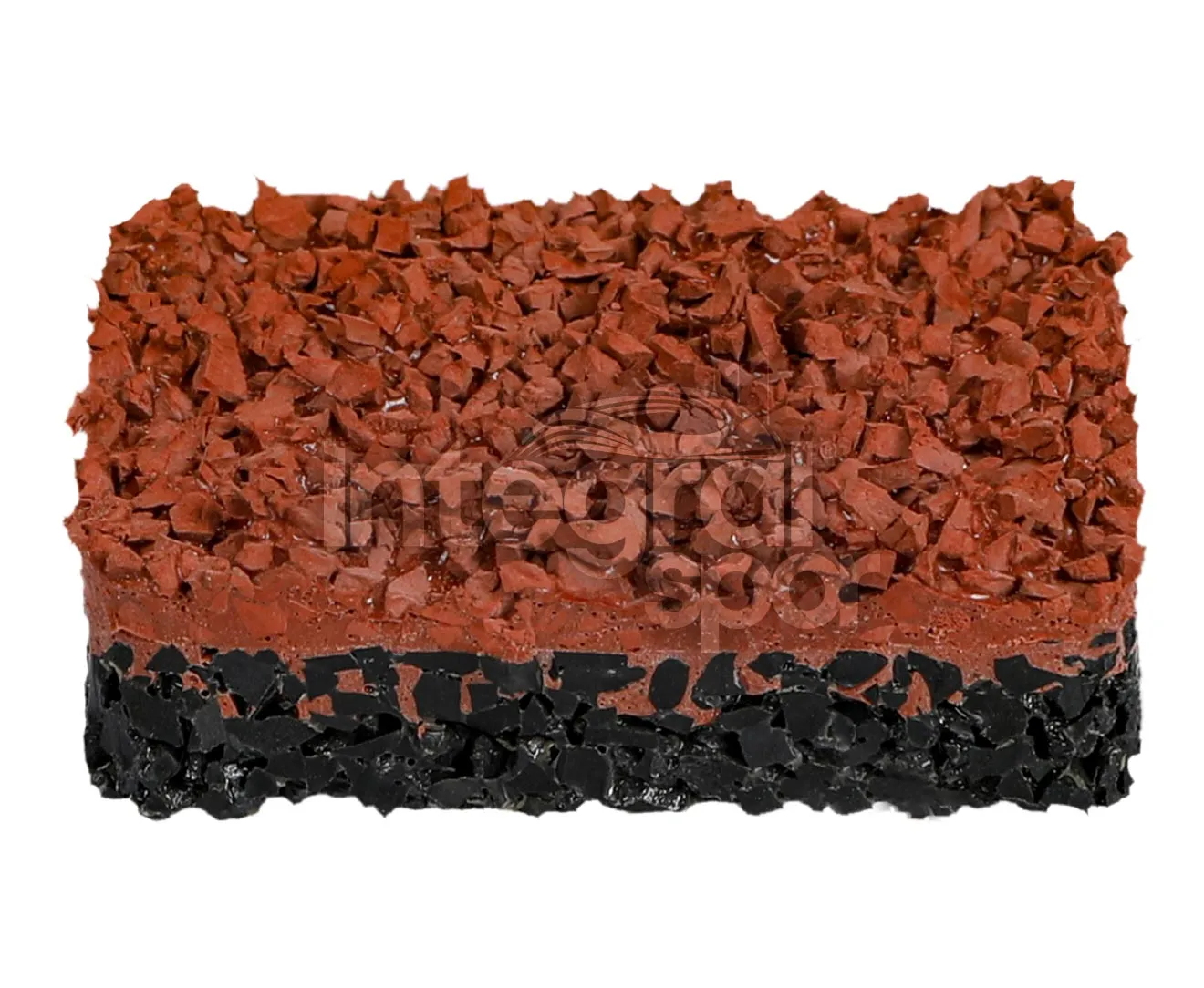 Чёрная SBR-резиновая крошка толщиной 10 мм наносится на грунт (асфальт) с помощью финишной машины, затем на поверхность заливается полиуретановый материал, после чего приблизительно 4 кг/м² EPDM-крошки высыпаются поверх и оставляются на сутки. В завершение поверхность очищается и наносятся линии.