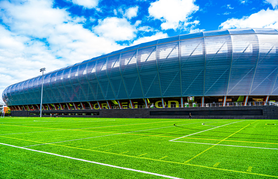 - Поля могут быть разработаны для многоцелевого использования, чтобы размещать различные спортивные залы или мероприятия.