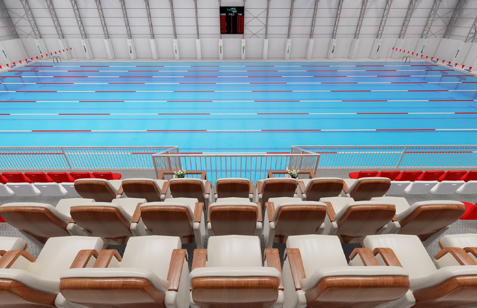 Полуолимпийский бассейн имеет 5 дорожек, каждая шириной 2,5 метра. Длина полуолимпийского бассейна составляет 25 метров, ширина — 12,5 метров. Вместимость трибун рассчитывается в зависимости от желаемого количества человек. Наша опытная команда завершает все процессы в кратчайшие сроки — всего за 3 месяца — и строит наши бассейны «под ключ».