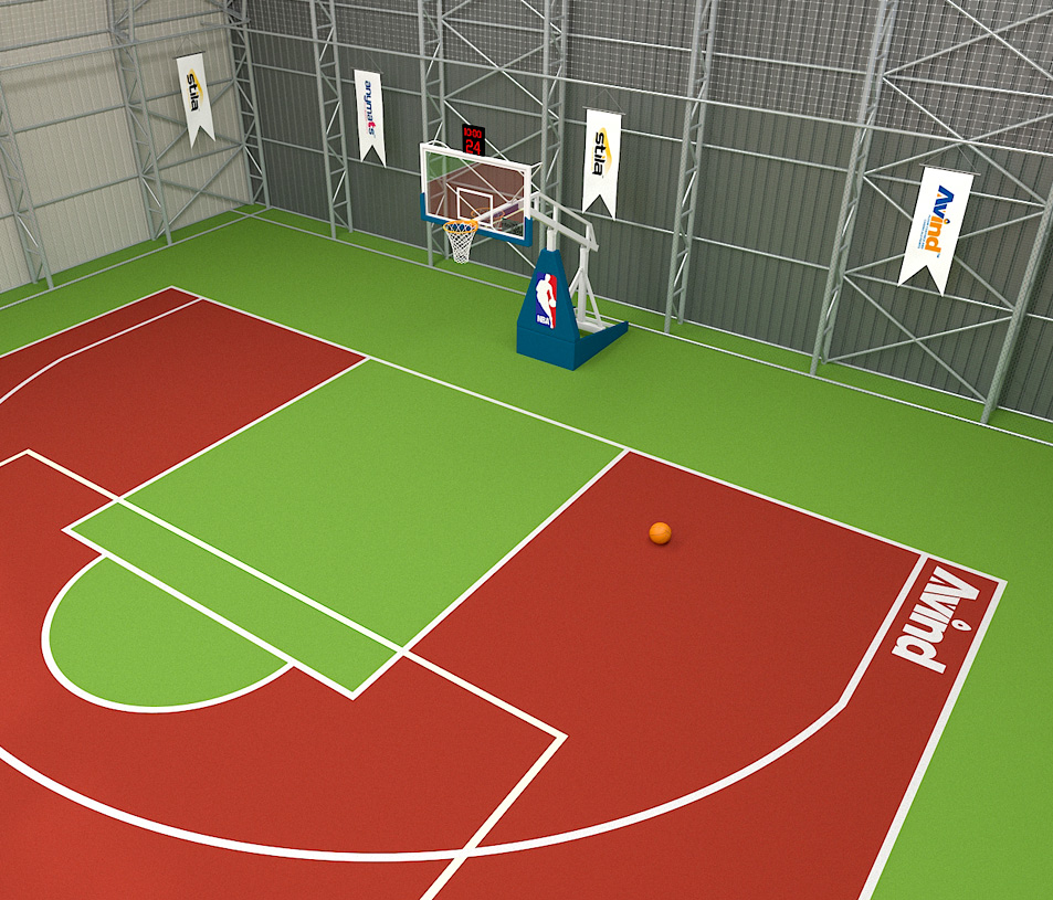 Акриловые, EPDM-каучуковые, искусственные травяные или полиуретаново-покрытые напольные системы обычно используются на многофункциональных спортивных площадках. Эти поверхности не скользят, амортизируют удары, не подвержены воздействию дождя и обеспечивают оптимальный отскок мяча. Безопасность игроков и долговечная производительность гарантированы.