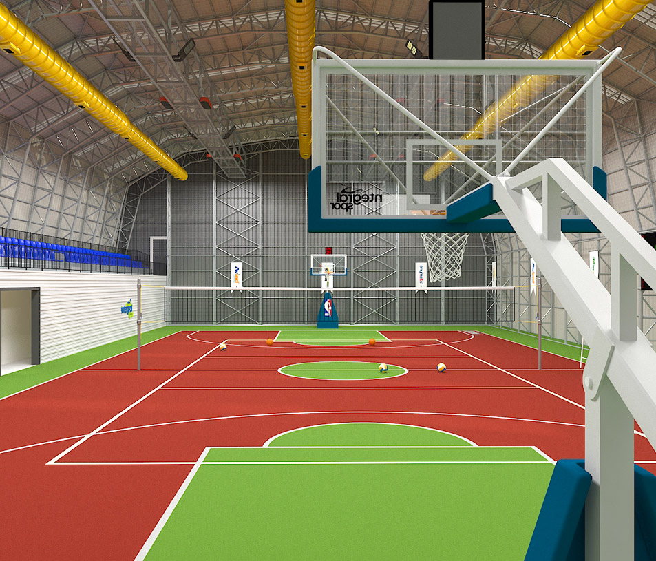 Многофункциональные площадки Integral Spor спроектированы таким образом, чтобы на одном поле можно было играть в различные виды спорта, такие как футбол, баскетбол, волейбол, теннис, гандбол. На этих площадках нанесены разметки для разных игр, используются переносные стойки и сетки, что обеспечивает быстрые и удобные переходы между видами спорта. Это идеальное решение, особенно для школ, муниципалитетов, жилых комплексов и социальных объектов.