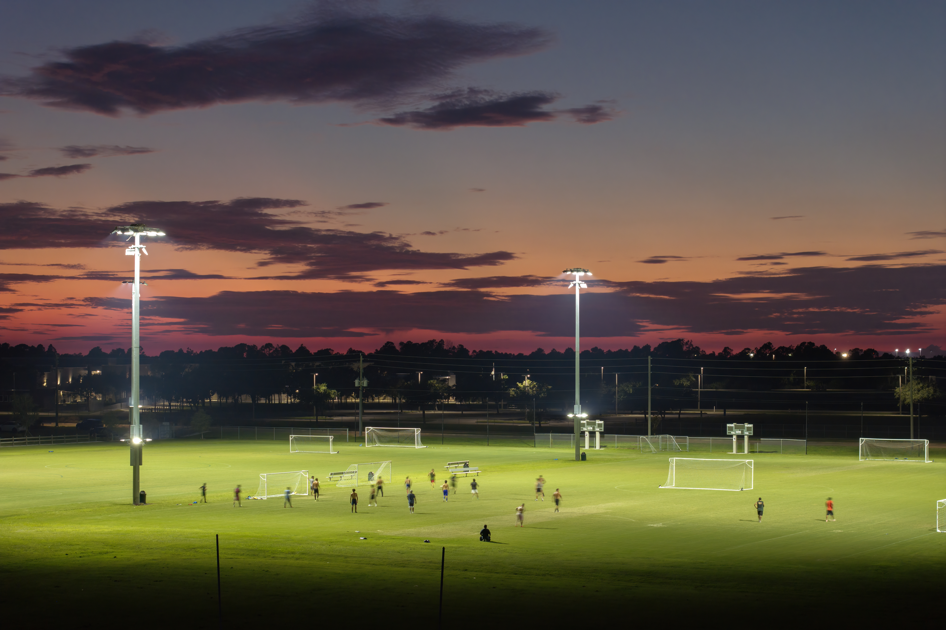 Окрестности поля освещены светодиодными прожекторами, что обеспечивает возможность проведения ночных матчей. Трибуны для зрителей, электронные табло, скамейки для запасных игроков, крытые зоны для команд и периметральные ограждения для безопасности интегрированы с полем. Вся конструкция спроектирована таким образом, чтобы обеспечивать комфорт и безопасность как для игроков, так и для зрителей.